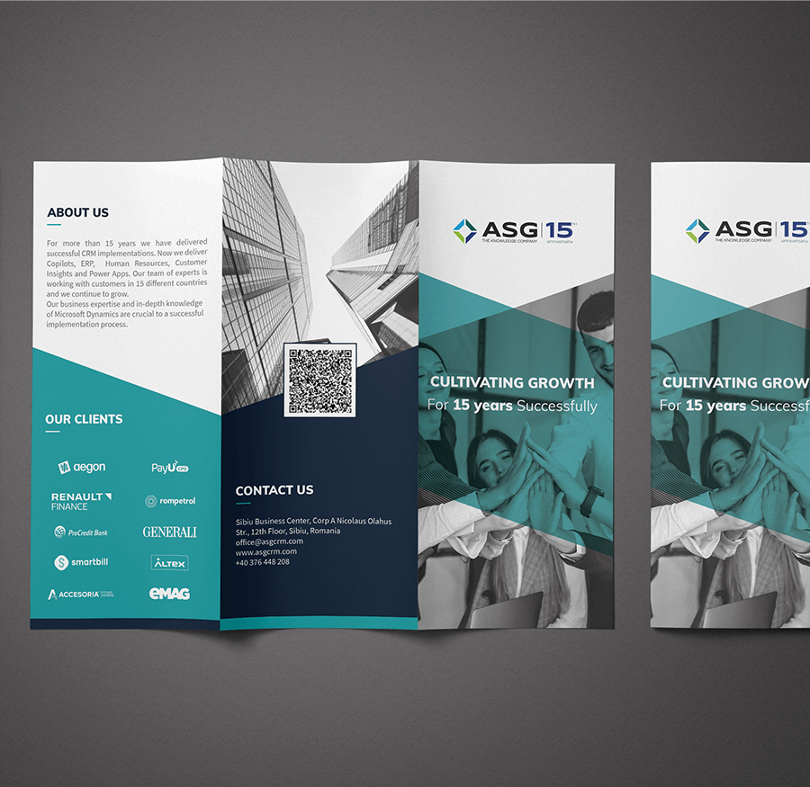În servicii enterprise, prima impresie începe înainte de demo. Pentru ASG — companie de implementări Microsoft Dynamics — am construit un set coerent de livrabile: logo aniversar 15 ani, prezentare PowerPoint și website. Materiale clare, aliniate vizual, gândite să fie folosite ușor în întâlniri, pitch-uri și comunicarea de zi cu zi, acolo unde credibilitatea contează.